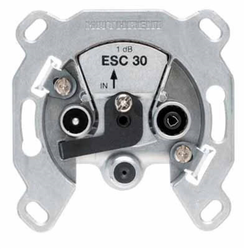 Antennen-Einzeldose, Frequenzbereich 47-2.150MHz, Ausgänge: TV, Radio, 1 x SAT-F, Gleichspannungsdurchgang, 2 dB Anschluss-/Auskoppeldämpfung SAT