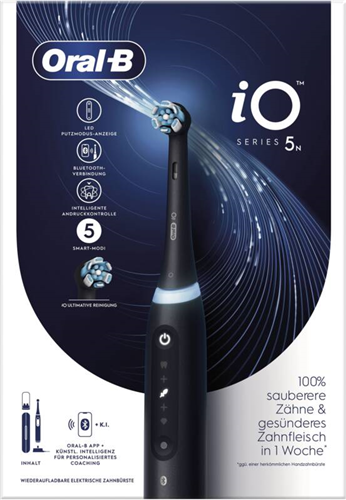 Elektrische Zahnbürste, runder Bürstenkopf, Andruckkontrolle (sensitiv, visuell), Reinigungsprogramme: 5, Aufhellen, Intensive Reinigung, Sensitive (besonders sanft), Super Sensitiv, Timer, Interaktives Display, Akkubetrieb, Reiseetui