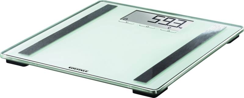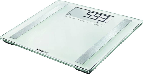 Personenwaage, digitale Anzeige, LCD-Ausführung, Ziffernhöhe: 35mm, Körperfettanalyse, Körperwasseranalyse, Anzeige der Muskelmasse, Berechnung des täglichen Kalorienbedarfs (kcal), bis 180 kg Tragkraft, 100 g Teilung, automatische Personenerkennung, 8 Personenspeicher, Glasauflage
