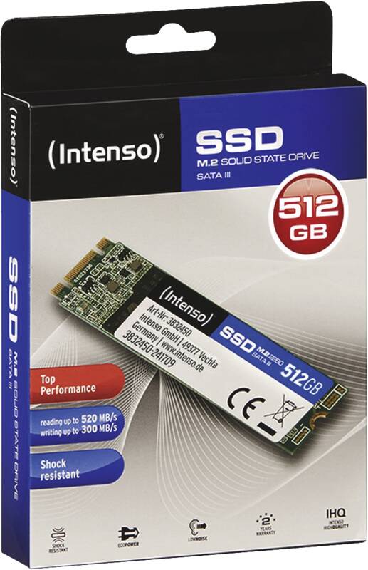 Solid State Modul (SSM), 2.280 Formfaktor M.2, 512 GB Kapazität, bis zu 490 MB/Sekunde Schreibgeschwindigkeit, bis zu 520 MB/Sekunde Lesegeschwindigkeit, M.2 (SATA)