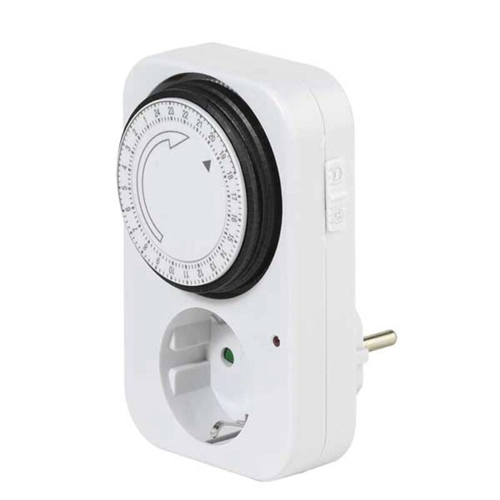 Tages-Zeitschaltuhr, mechanisch, maximal 96 Schaltmöglichkeiten pro Tag, minimal 15 Minuten Schaltabstand, 3.600 Watt maximale Belastung
